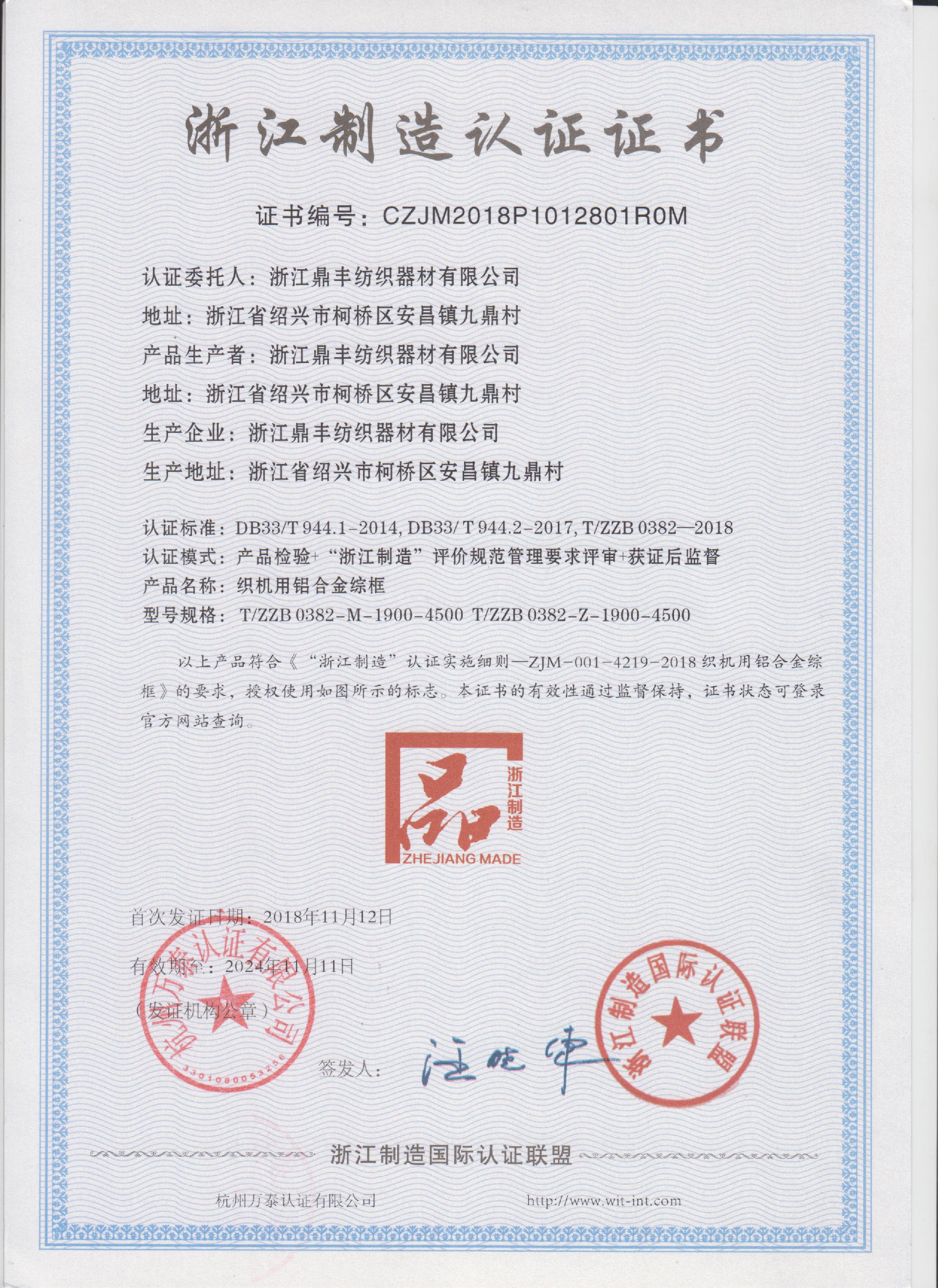浙江鼎豐紡織器材有限公司始建于1986年,是一家專(zhuān)業(yè)生產(chǎn)各類(lèi)無(wú)梭織機(jī)用鋼筘:噴氣筘、噴水筘、劍桿筘、其他類(lèi)型鋼筘;鋁合金綜框、鋼片綜、停經(jīng)片、經(jīng)軸、織軸、卷布輥等產(chǎn)品及配件的民營(yíng)企業(yè)。